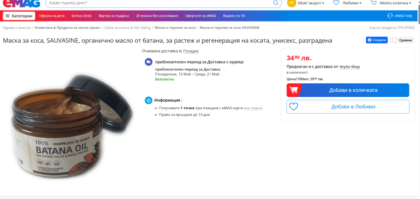 Цената без промоция на най-високо оценения продукт в еМАГ е 34,80 лв +( безплатна доставка).