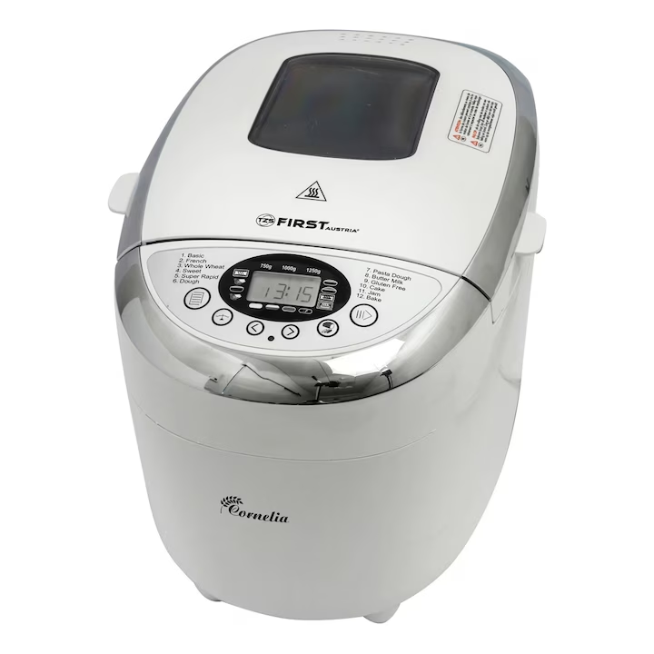 Хлебопекарна лебопекарната First Austria е универсален и практичен кухненски уред, оборудван с редица усъвършенствани функции, които позволяват лесно приготвяне на различни рецепти. Машината може да се похвали с впечатляващите 12 програми, които отговарят на различни диетични нужди и предпочитания.